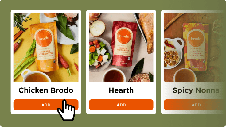 After trying them, choose your next flavors in the portal or by emailing hello@brodo.com